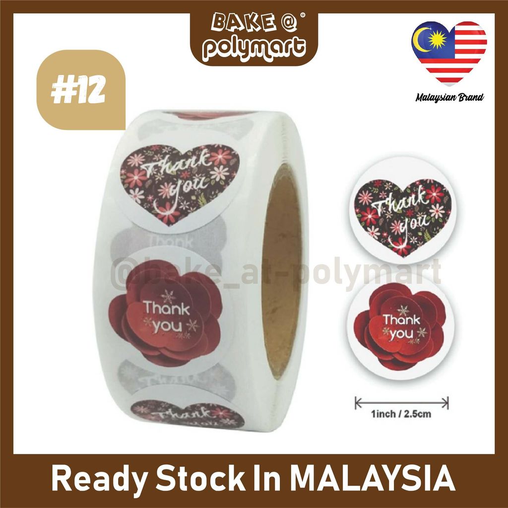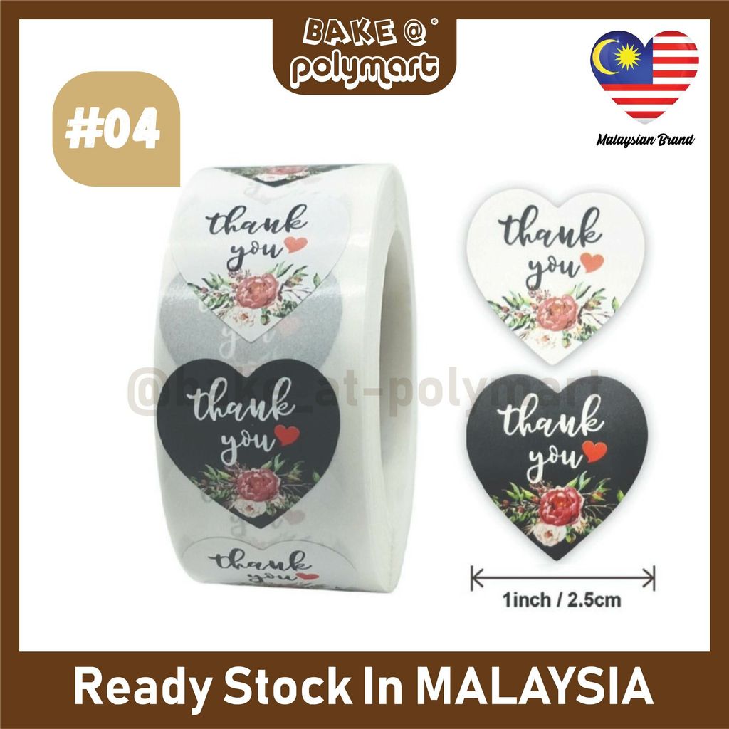 Sticker Roll Thank You/ Hand Made/ Happy Birthday (1Roll 500pcs) [Cartoon Design/ Flowers Design/ Heart Shape]